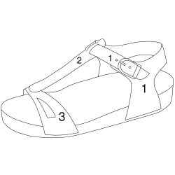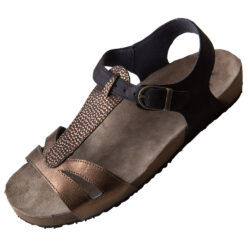 Eine elegante Sandale mit tollem Gehkomfort und Stabilität. Der Fersenriemen hat einen Schnalle und ist dort verstellbar. Der Zehenriemen bedeckt die Zehen weitgehend und ist nicht verstellbar. Ein schönes Detail im Zehenriemen sind die dekorativen Öffnungen.